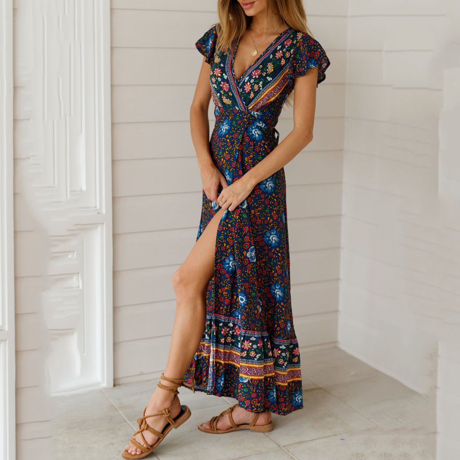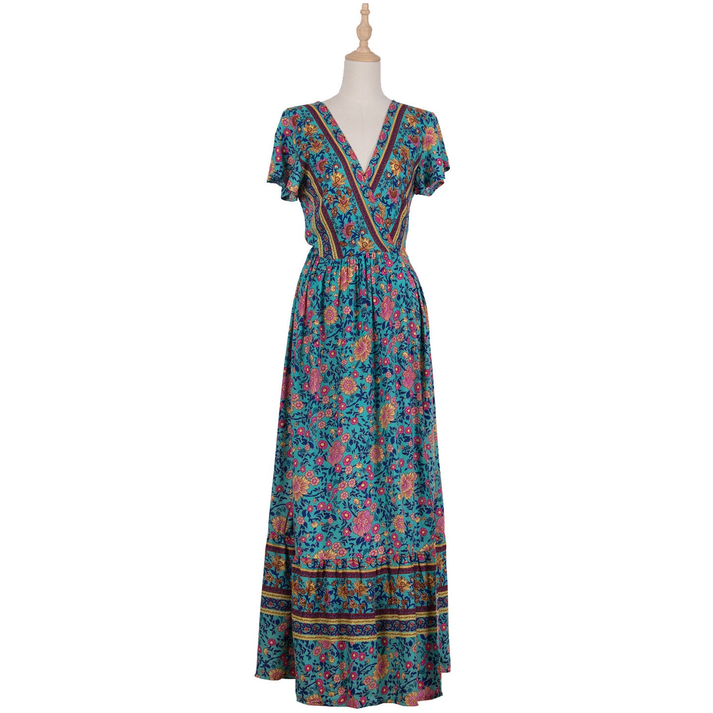 Bohemian V-Neck Floral Printed Vacation Dress