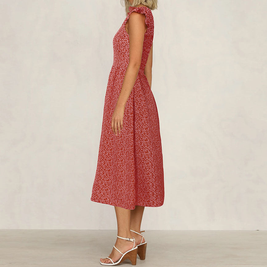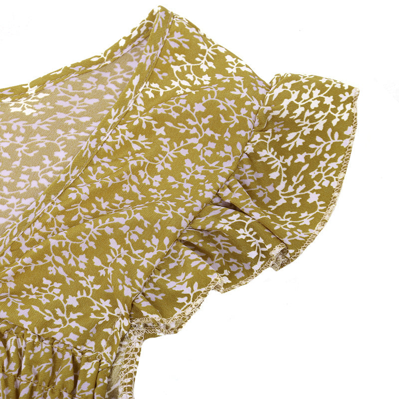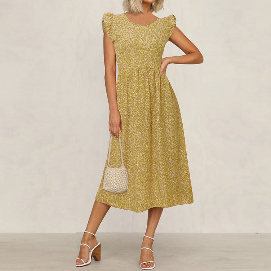 • Load image into Gallery viewer, Round Neck Floral Flying Sleeve Dress