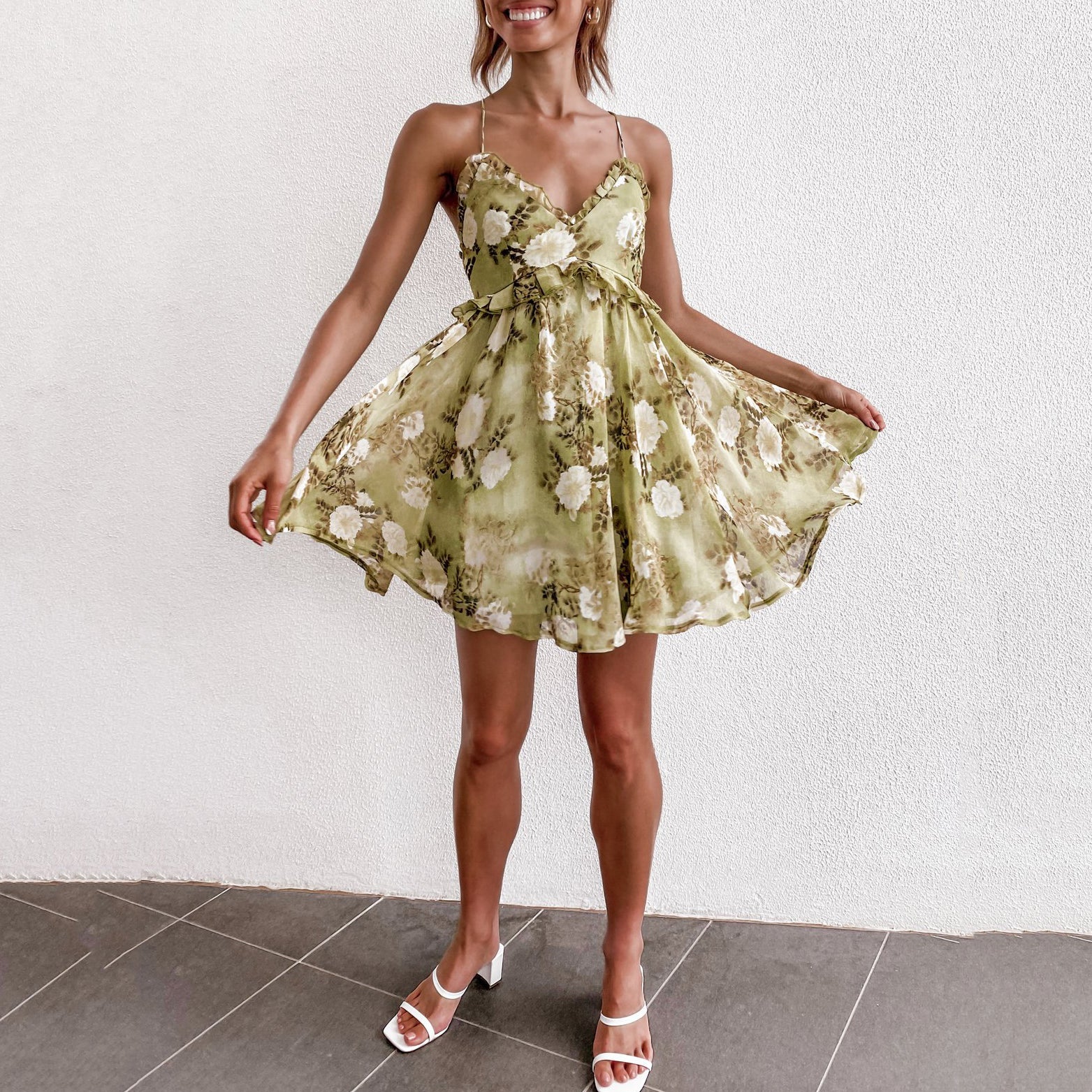 - Backless, ruffle design