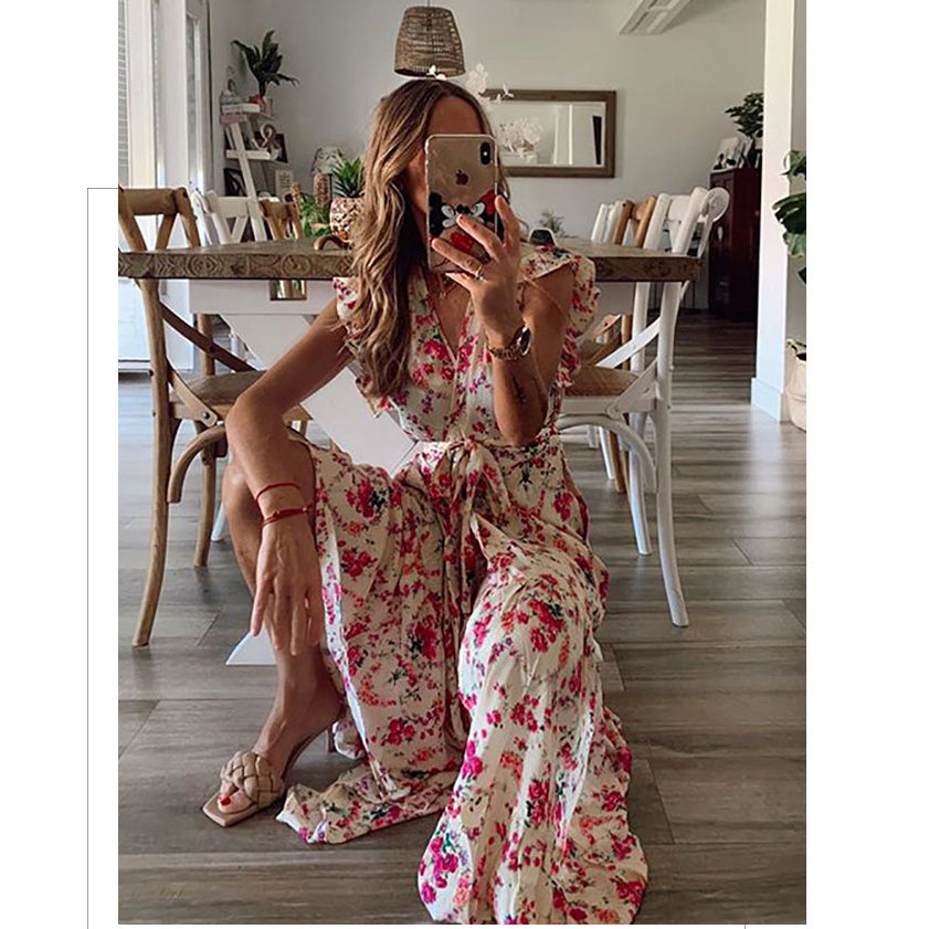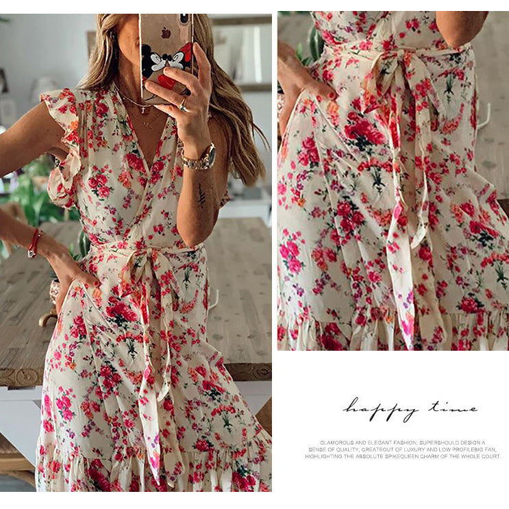 - Floral printed, v-neck design