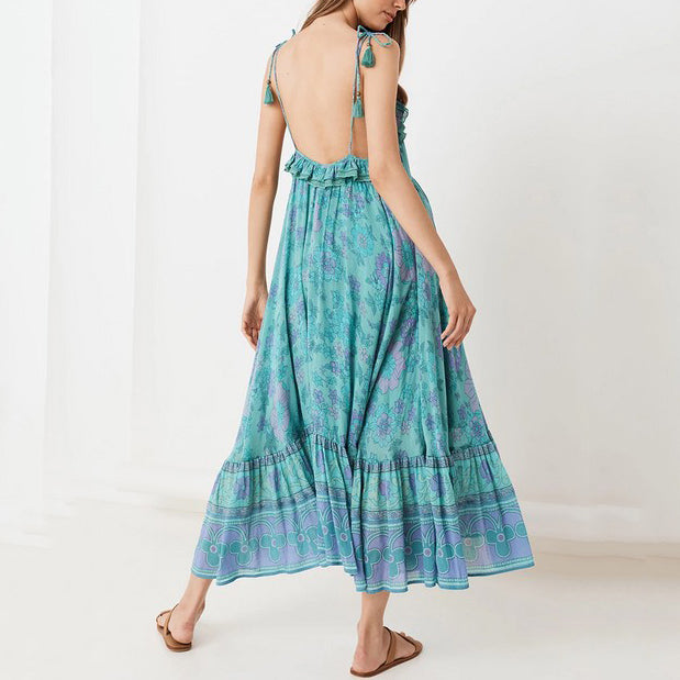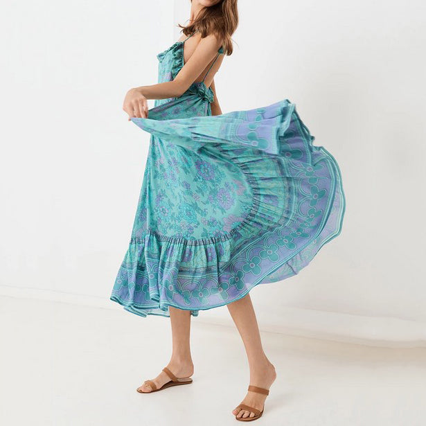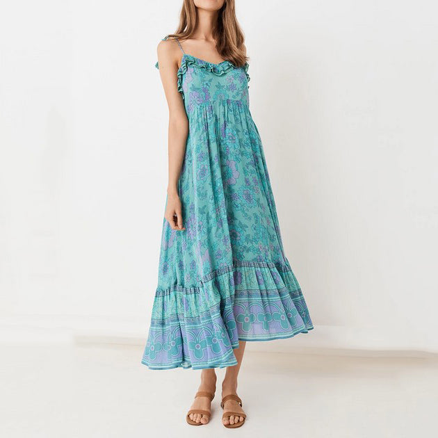 • Load image into Gallery viewer, Fashion Printed Suspender Maxi Dress