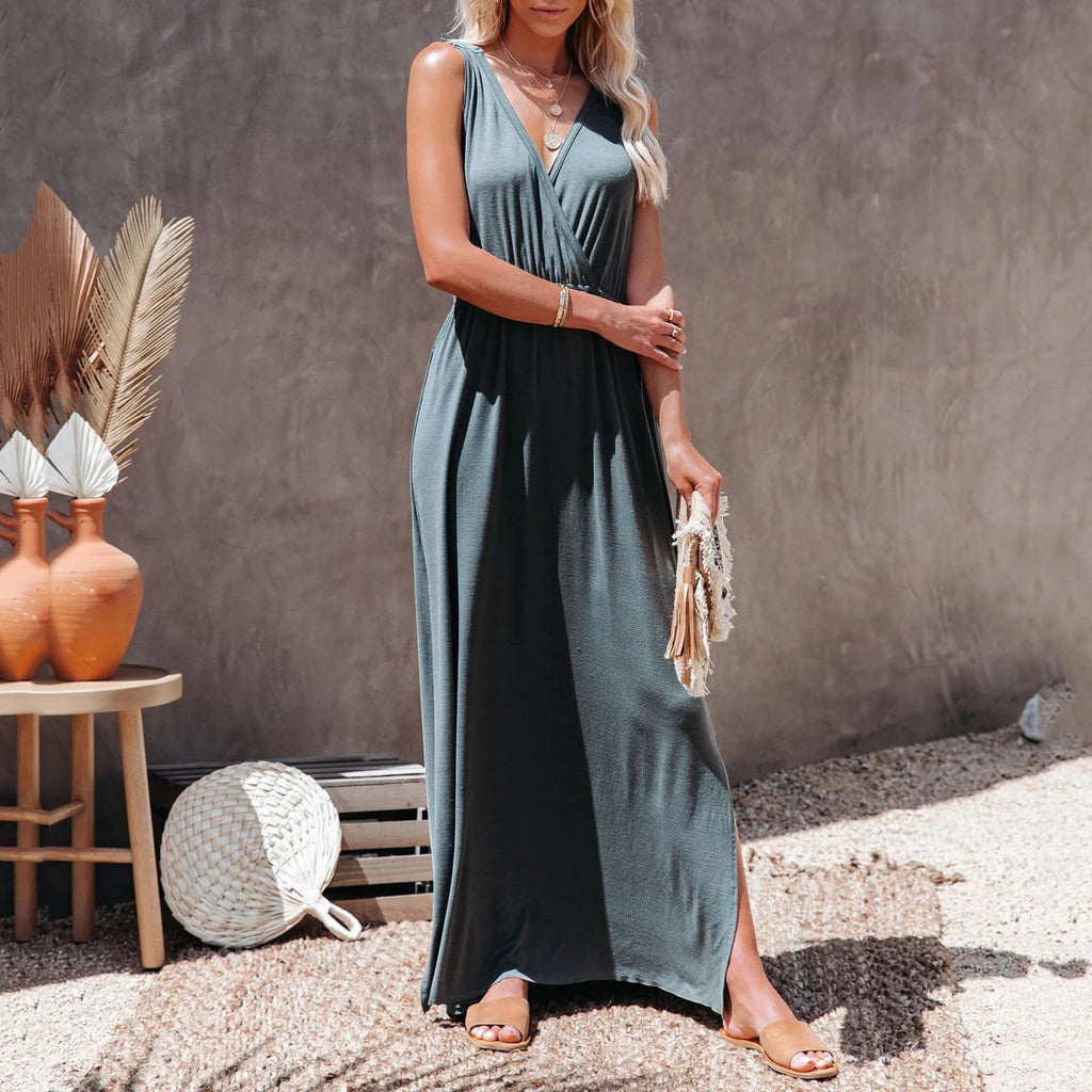 V Neck Halter Waist Casual Maxi Dress