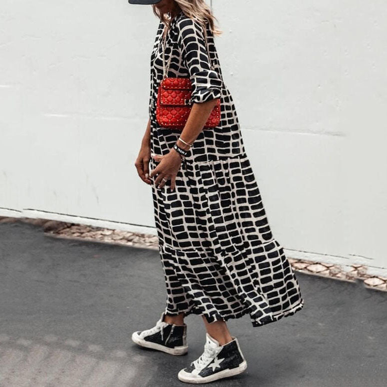 • Load image into Gallery viewer, Casual V-Neck Leopard Printed Maxi Dress