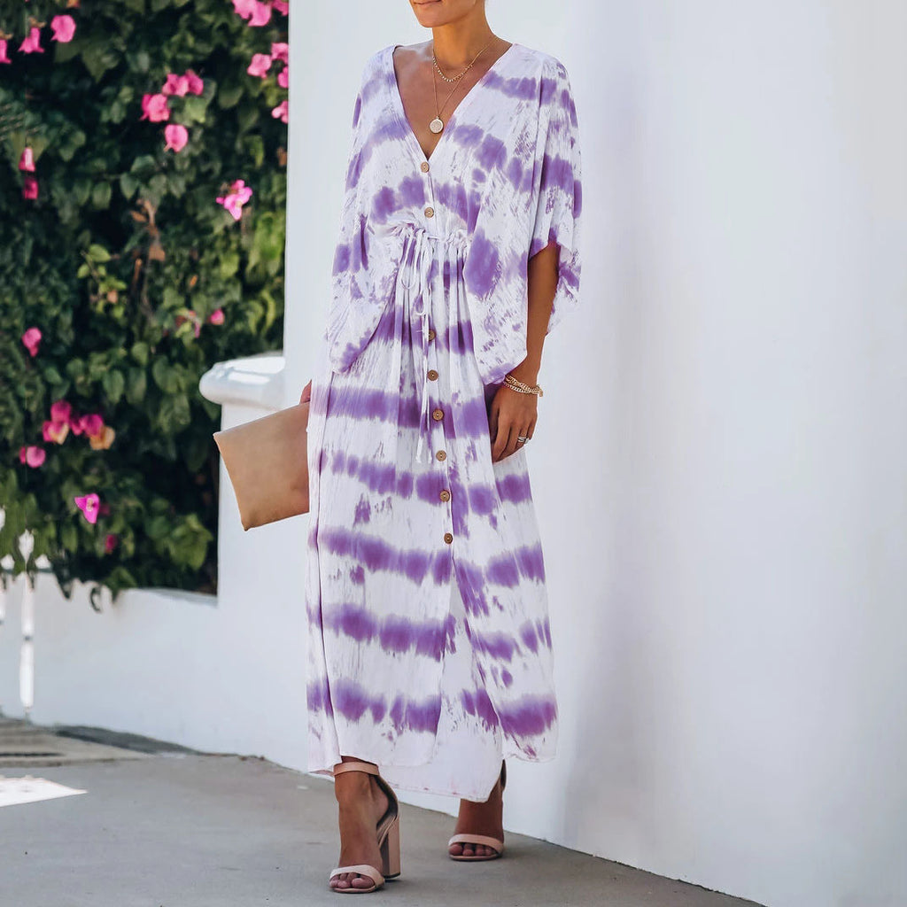 • Load image into Gallery viewer, Casual V-Neck Tie-Dye Maxi Dress