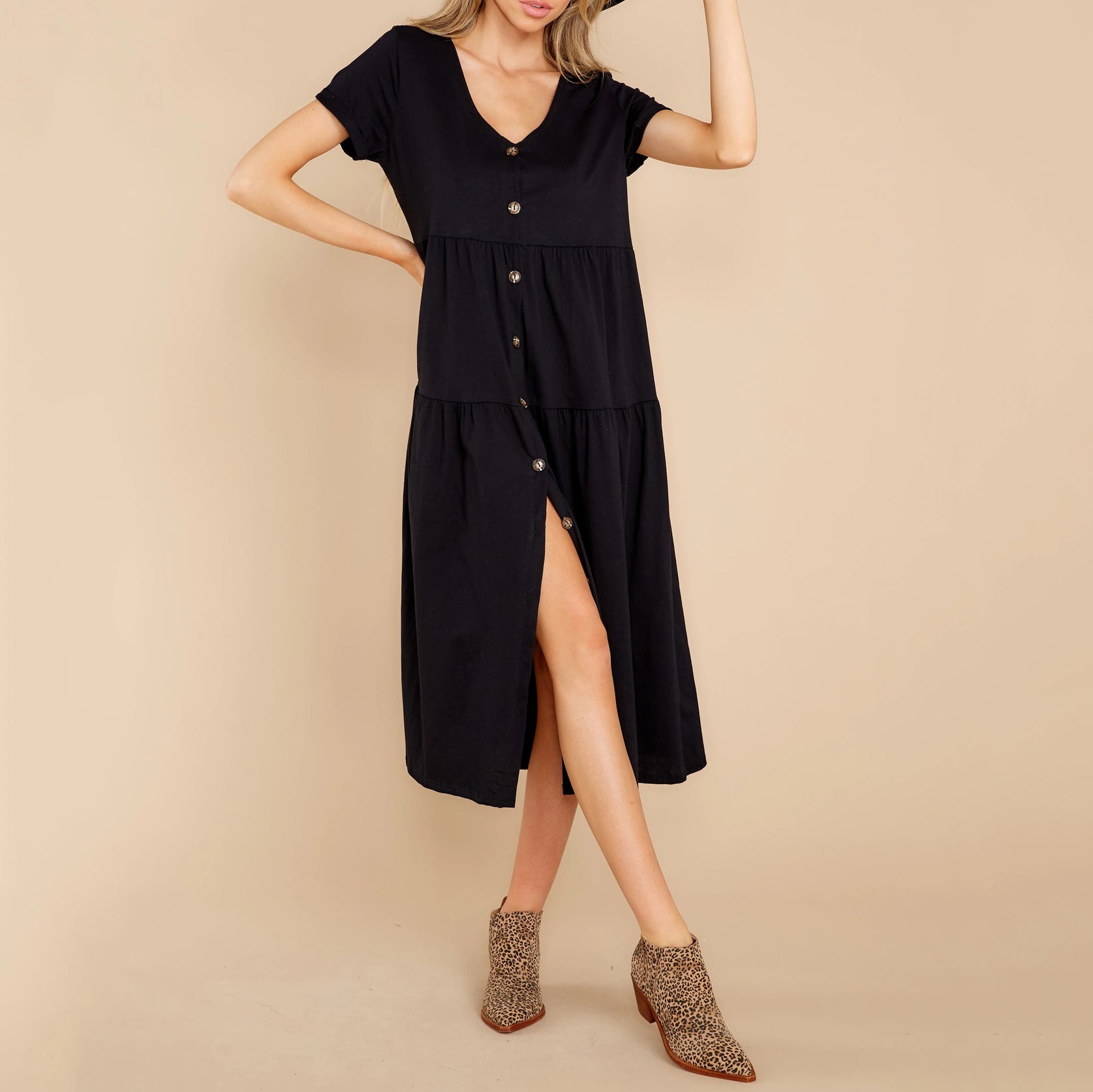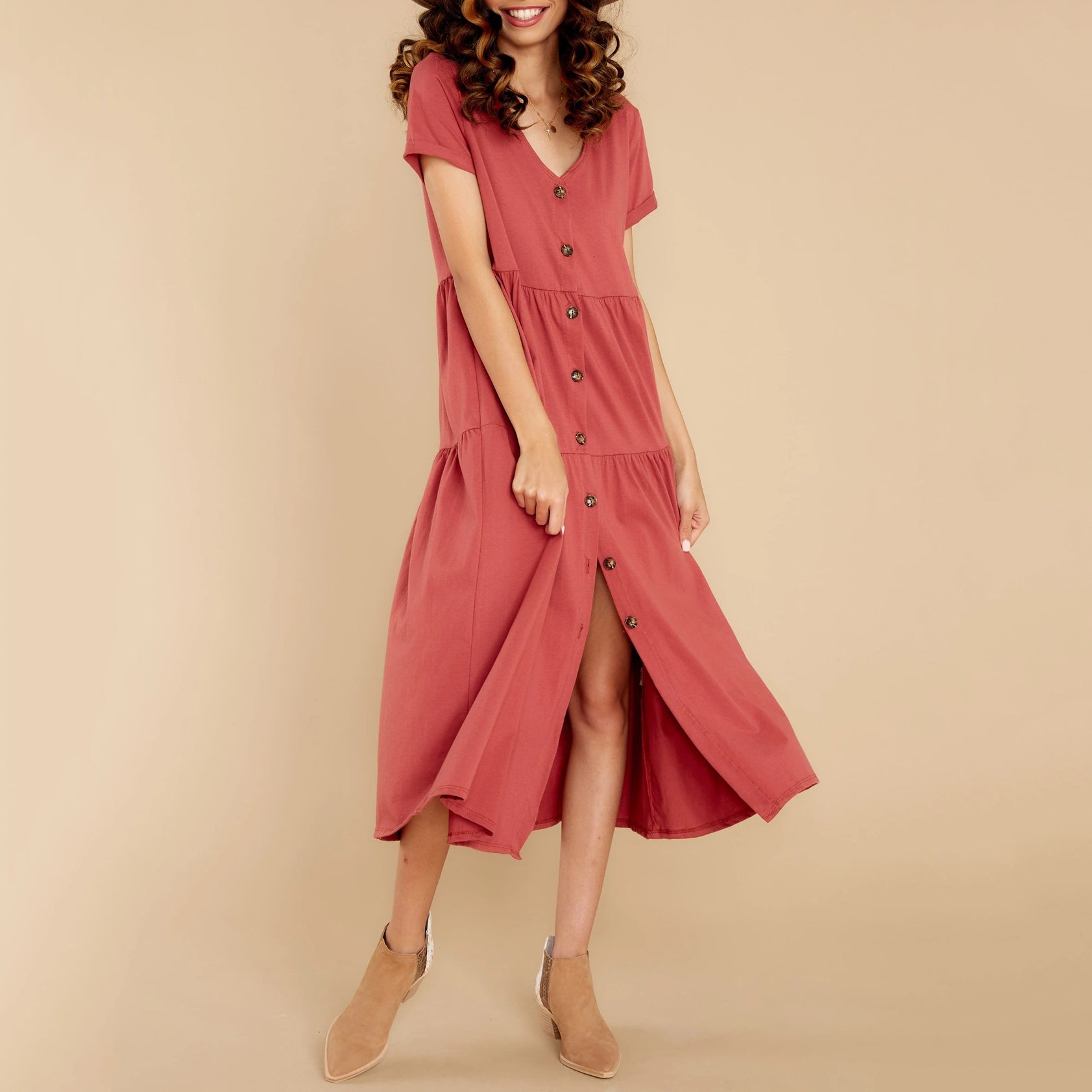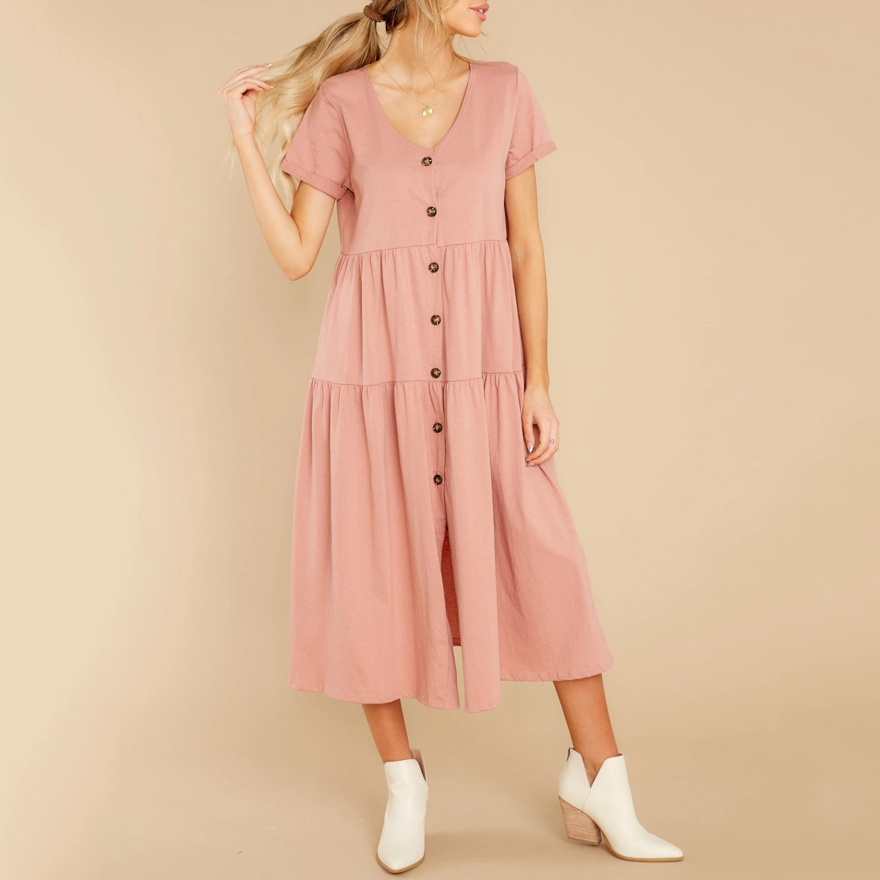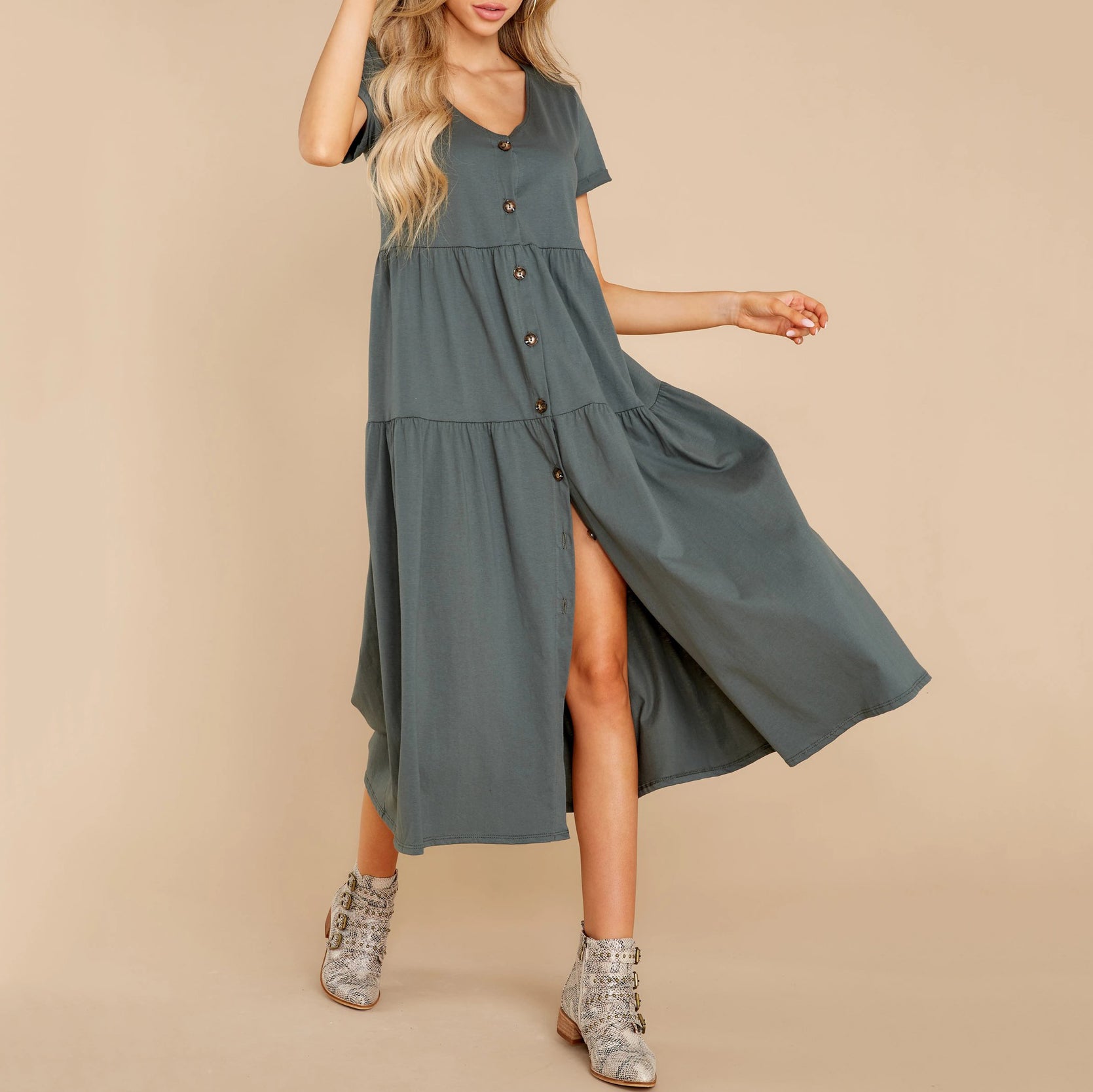 • Load image into Gallery viewer, Casual V-Neck Button Dress