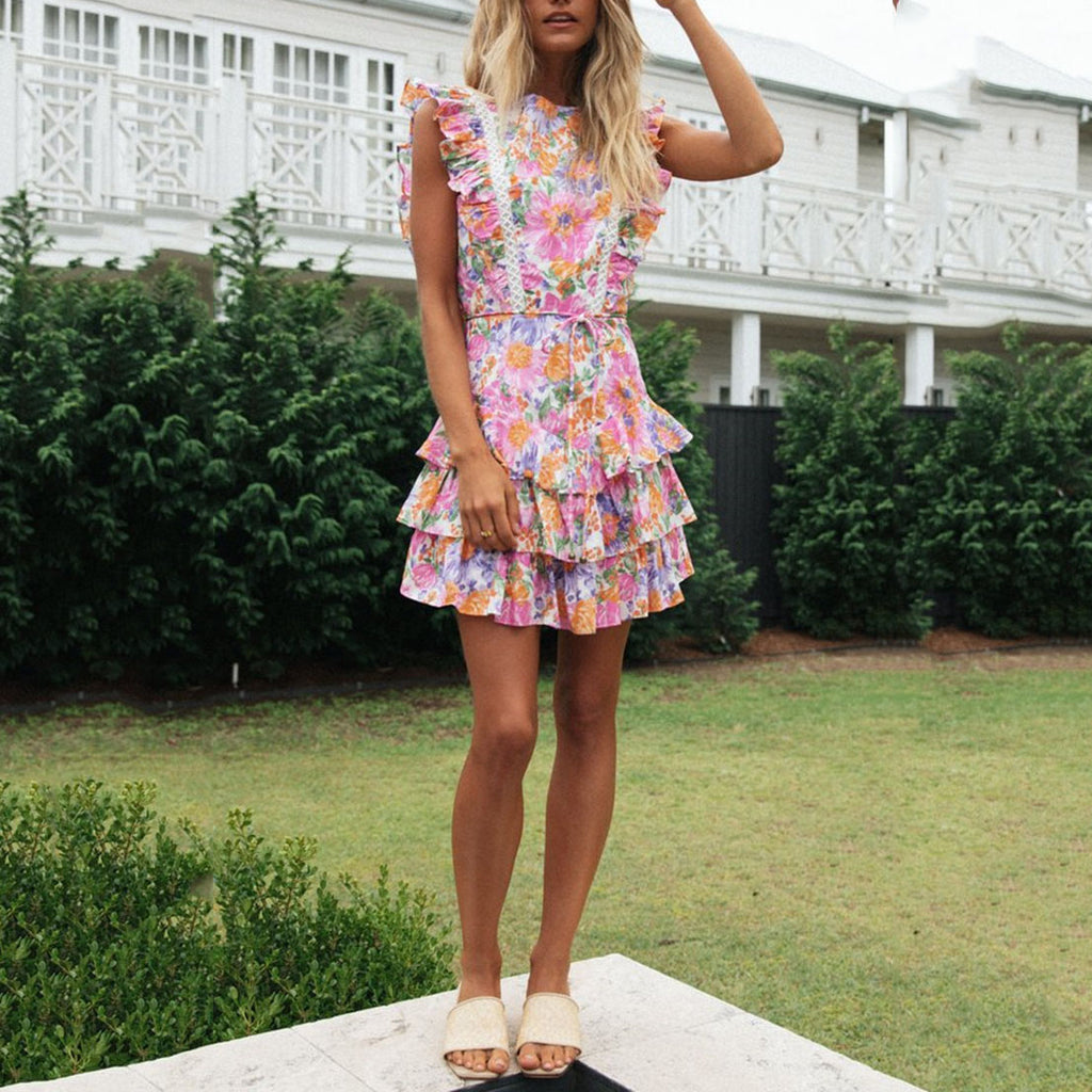 • Load image into Gallery viewer, Floarl Printed Round Neck Halter Dress
