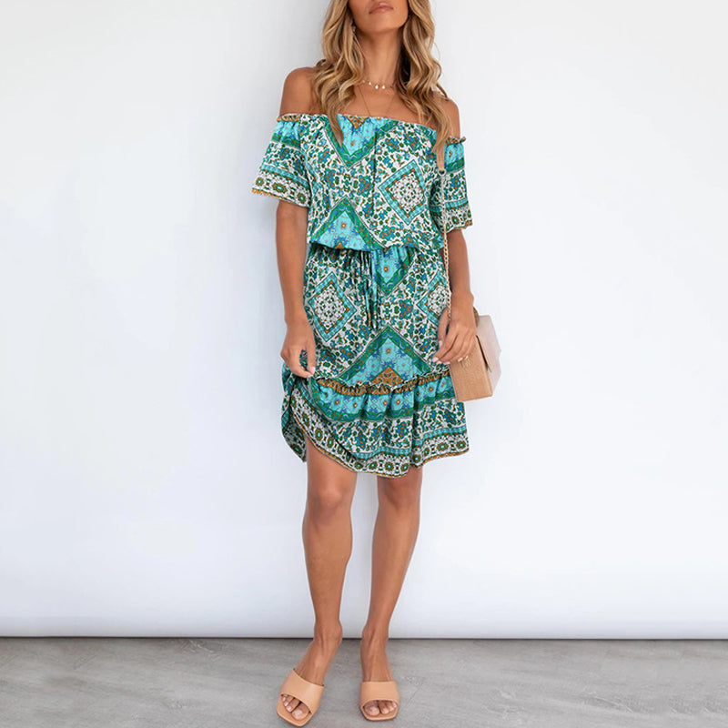 Bohemian Style Printed Off Shoulder Dress