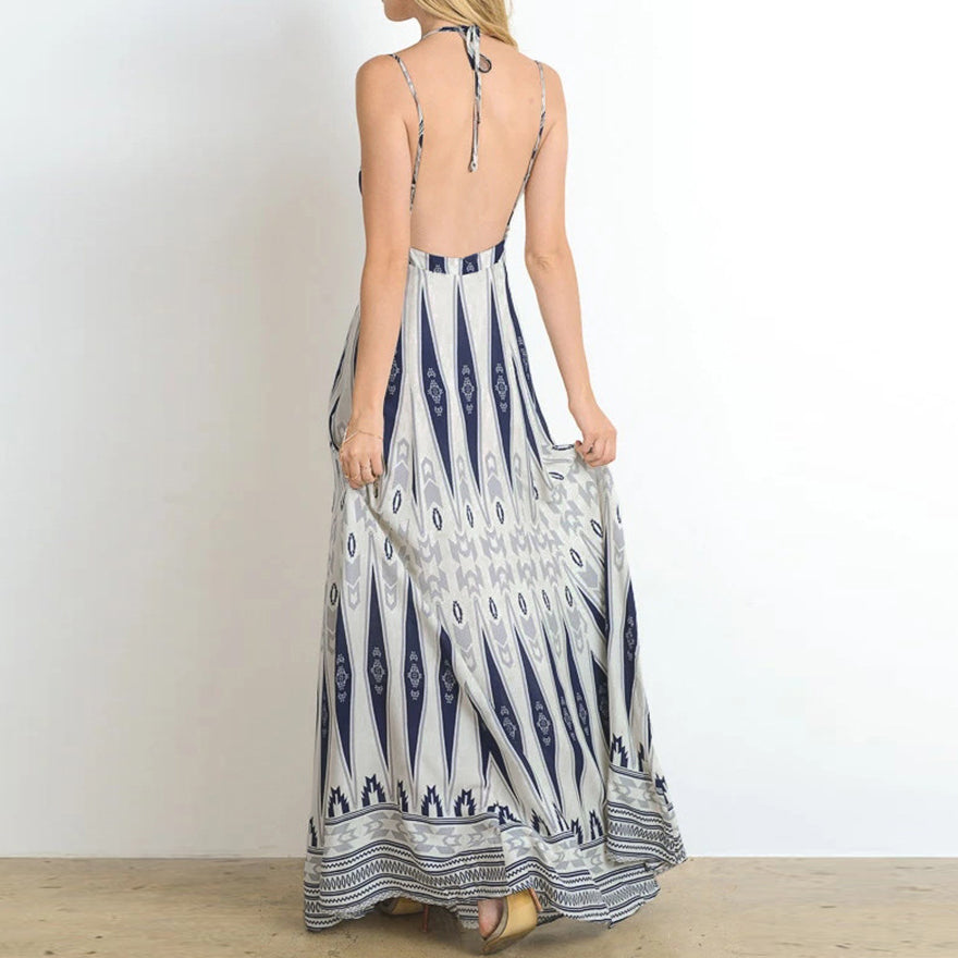 • Load image into Gallery viewer, Retro Print V-Neck Sling Maxi Dress