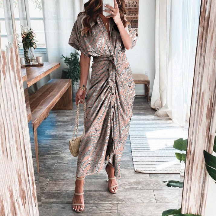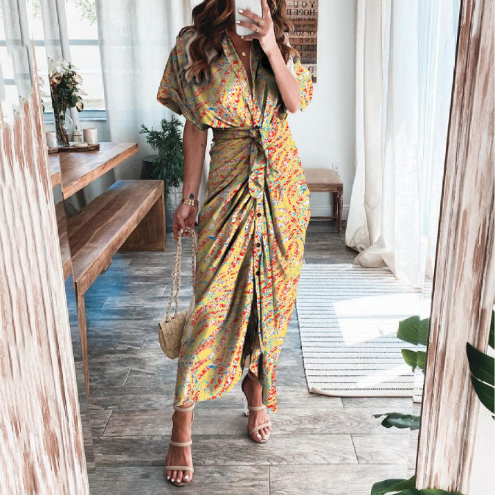 • Load image into Gallery viewer, Elegant Fashion Printed V-Neck Maxi Dress